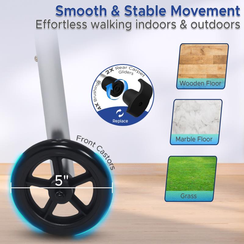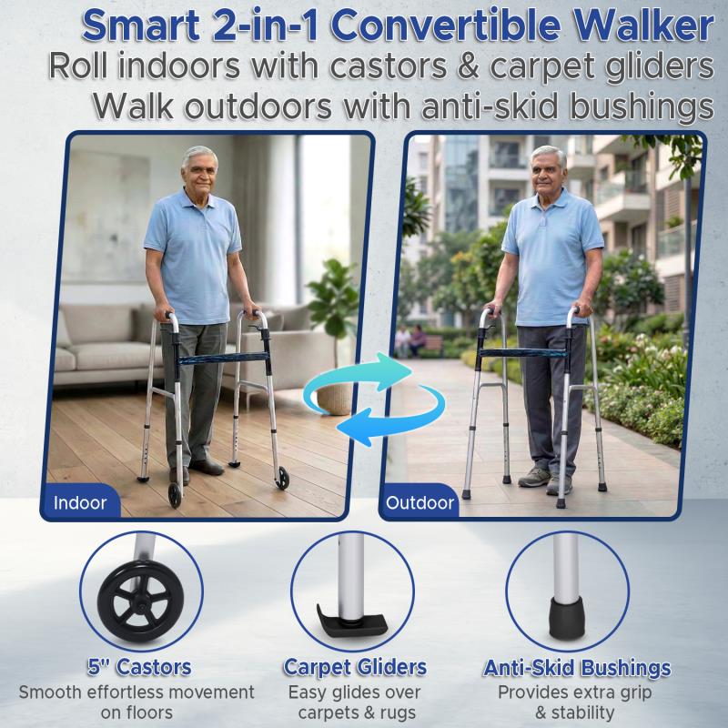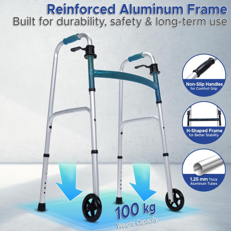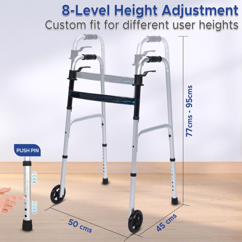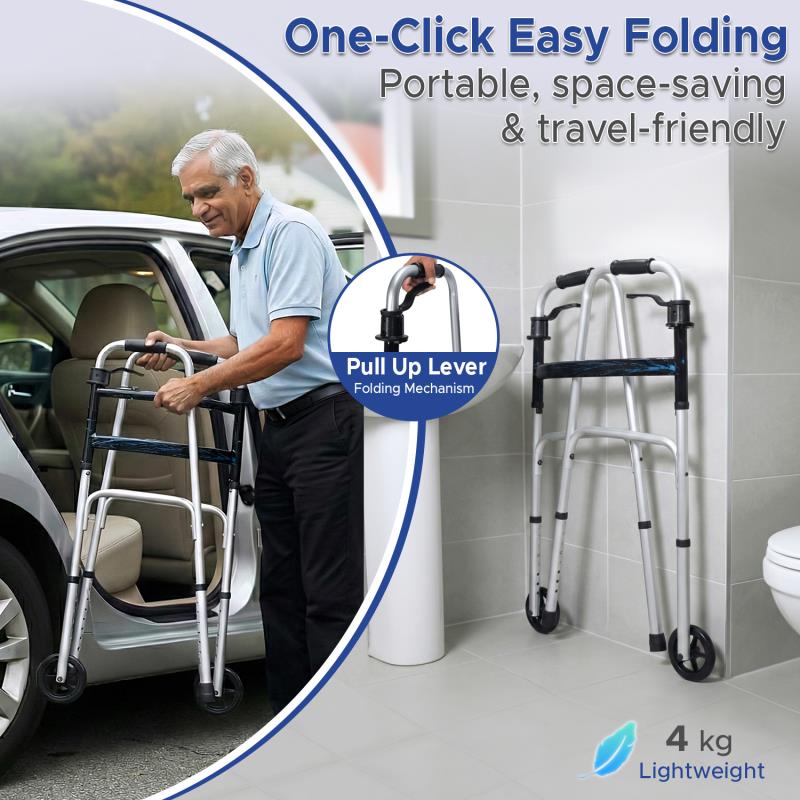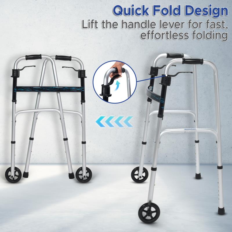 - A simple lever mechanism to fold the walker makes it easy to use and store.