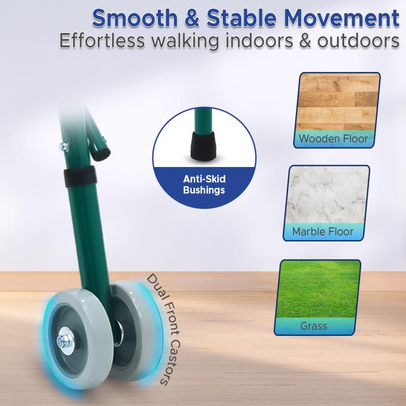 - Dual front wheels gives added safety and appropriate for indoor and outdoor use.