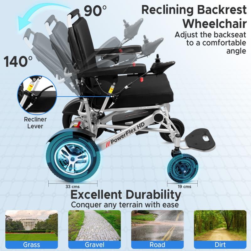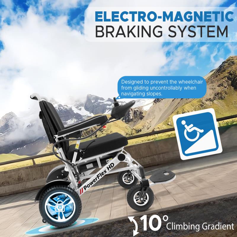 All-Terrain Wheels with Electro-Magnetic Braking: Conquer diverse landscapes with ease, and enjoy the added safety and control of electro-magnetic braking. Our all-terrain wheelchair, capable of climbing slopes upto 10°, provide exceptional stability and traction, making it easy to navigate various surfaces, from city streets to rugged trails, while the braking system ensures you can stop precisely when needed.