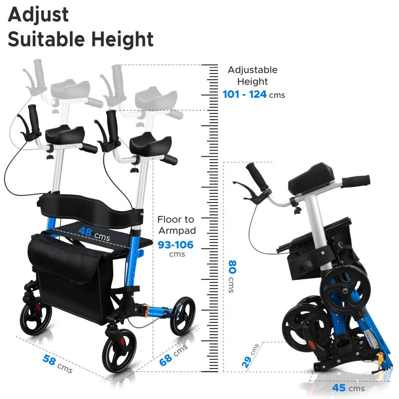 Easy to Carry and Transport: The upright rollator folds into a compact, standing position, making it highly portable for travel and storage. Weighing just 10kg, it is lightweight and easy to carry, ensuring effortless transportation and convenience for users on the go.