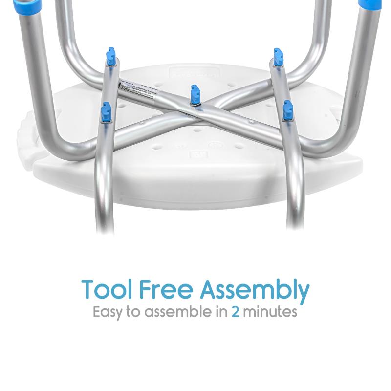 - ERGONOMICALLY DESIGNED FOR SAFETY: Two ergonomic side handles, are designed for added security to the user, also allowing to easily grip the chair. Shower head slot allows users to place the shower head while bathing to mitigate the risk of being tripped by the shower hose.