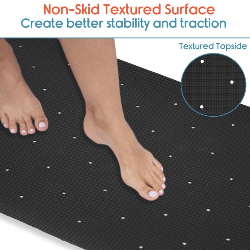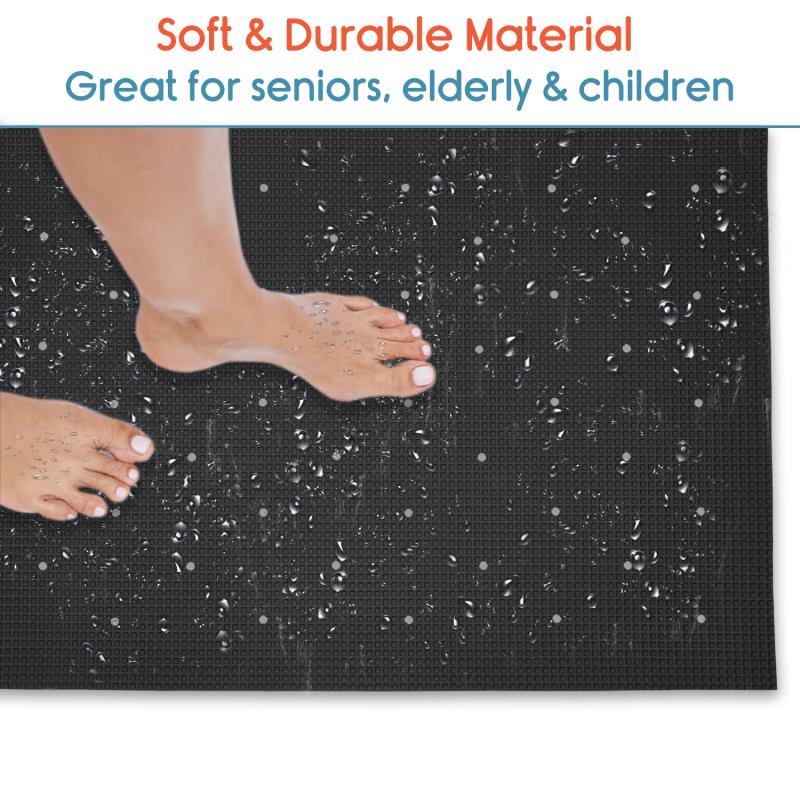 SQUARE DESIGN, SECURE FOOTING FOR SHOWERS: Textured with a square pattern large bath mat provides secure footing in bathtubs and showers to prevent hazardous slips and falls. Our soft, nonslip bath mat is great for seniors, children, and those with balance concerns.